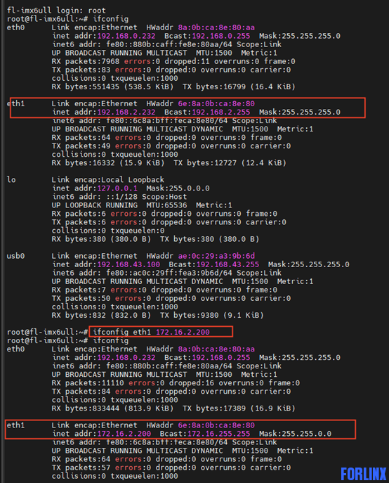网口不通,还可能两网口不能在同一网段,如何判断? IP地址的ABC类型的分配模式主要是由IP地址的第一个字节的数值来确定: A类是1.0.0.0/8到126.0.0.0/8 默认子网掩码:255.0.0.0 B类是从128.0.0.0/16到191.255.0.0/16 默认子网掩码:255.255.0.0 C类是从192.0.0.0/24到223.255.255.0/24 默认子网掩码:255.255.255.0 注:全0和全1分别代表网络地址和广播地址,不能分配给主机当作一般的IP地址进行使用。 判断是否为同一位网段:二进制的IP和子网掩码按位相与得到相同的网络地址,即为同一网段。 例如:我司MX6U系列开发板两个网口同时使用需要在两个网段,如果一个网口IP设为172.16.2.202,另一个网口IP设为172.16.0.202,这样可以同时用吗? 结果是不能。 因为172开头为B类地址,默认子网掩码是255.255.0.0,所以这两个网口和子网掩码与运算得到的是相同的172.16.0.0,为同一网段,不能使用。 下图为修改IP,随之变化的子网掩码。 |