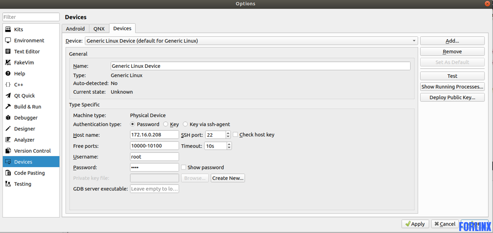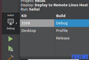 使用以上方法,对应平台需要支持gdb调试和ssh服务。3568linux是支持的。调试时需要将电脑虚拟机,开发板设置为同一网段ip,虚拟机网络配置为桥接模式。SSH连接用户名root 密码 root。 调试时选择: 最终效果:点击绿色按键“Run”在开发板中运行Qt程序 |