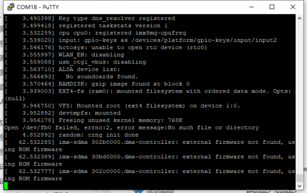 [ 62.527760] imx-sdma 302b0000.dma-controller: external firmware not found, using ROM firmware